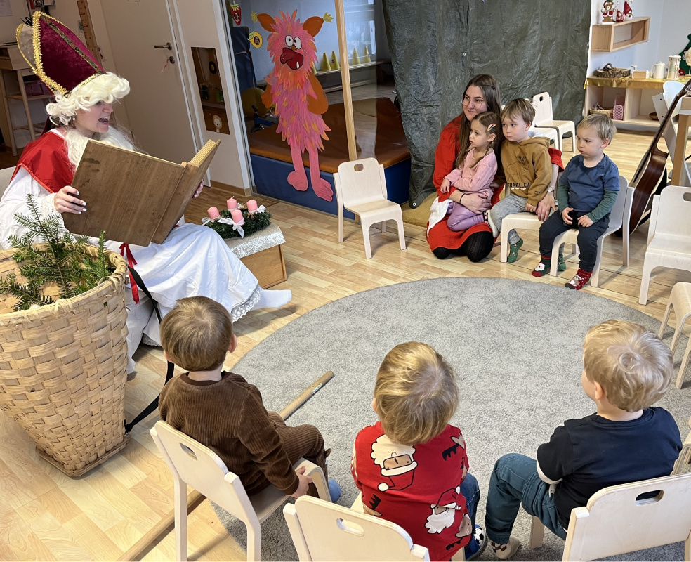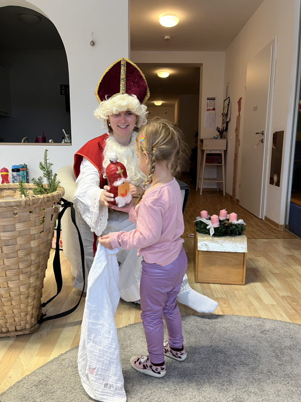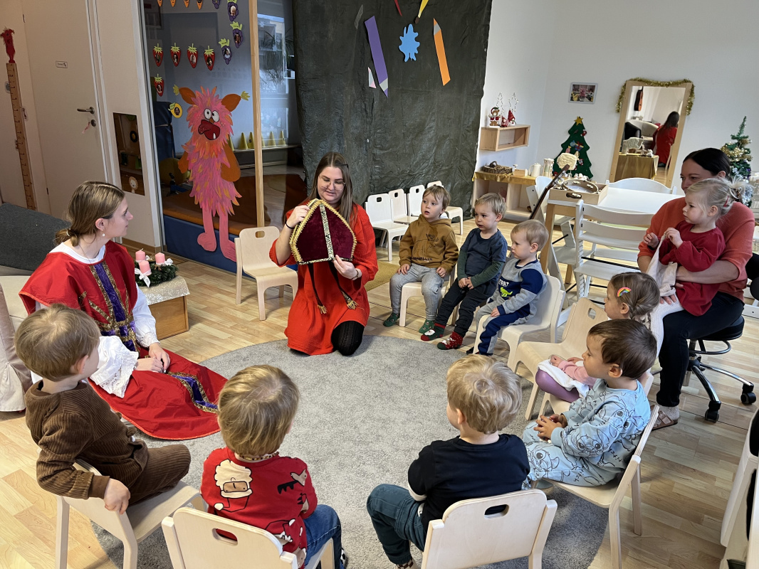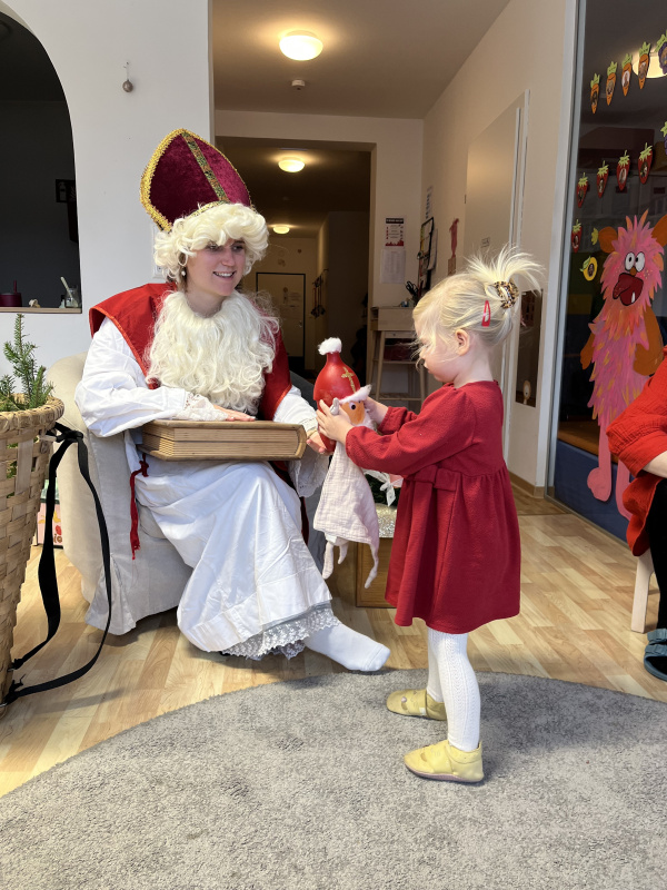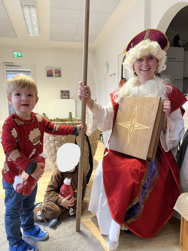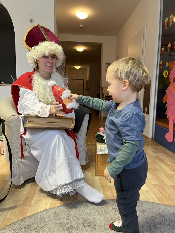 In unserer Kinderkrippe durften wir einen ganz besonderen Tag erleben, denn der Nikolaus kam zu Besuch! Schon am Morgen waren die Kinder voller Vorfreude und Spannung. Als der Nikolaus schließlich eintrat, wurde er mit großen Augen, strahlenden Gesichtern und viel Neugier begrüßt. Für jedes Kind hatte er eine liebevoll ausgewählte Überraschung dabei, die er persönlich überreichte.