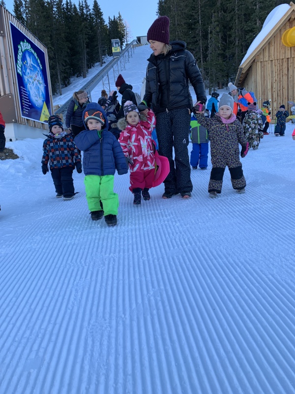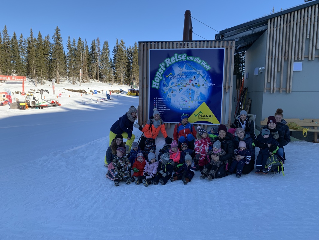 Durch den direkten Ausblick unserer Krippenräumlichkeiten auf die Gondelbahn, wurde bei unseren "Kleinsten" als Erlebnisgrundlage das Interesse an der Schladminger Planai, mit der dazugehörigen Gondelbahn, geweckt. Aufgrund dessen machten wir am 24.01.2020 einen gemeinsamen Ausflug auf die Planai. Als großes Highlight galt dabei natürlich die Gondelfahrt hinauf auf den Berg! Oben angekommen erwarteten uns viele weitere spannende Ereignisse. Mit dem "Hopsi-Express" ging es hinunter in das "Hopsi-Land". Dort durften sich unsere Kinder frei bewegen um die vielen verschiedenen Spielattraktionen auszuprobieren.